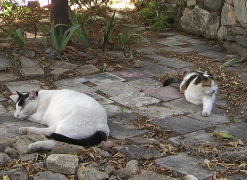 ブーカンビリアの花の下の猫さんたち~アテネ