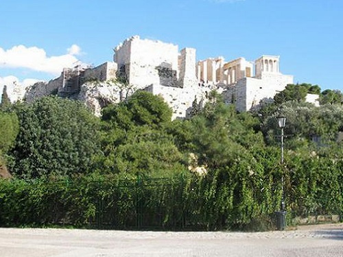 アクロポリスのこの林の中に野良猫が住んでいる。