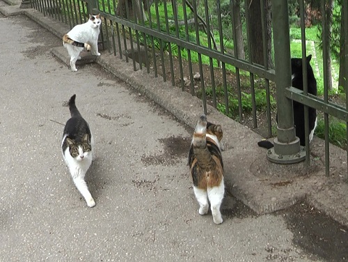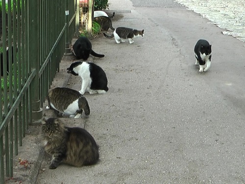 ここにはレストランも民家もない場所で猫たちは人間だより。