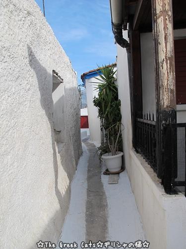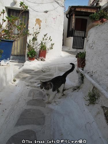ギリシャの白い町にすっきり浮き立つニャンコちゃん、かわいいです。