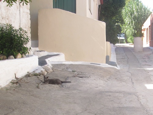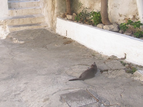 アナフィオティカというのアクロポリスの北東斜面にできた住民地区だ。猫たちの顔ぶれも変わった。このようなスレンダーな猫さんがいた。