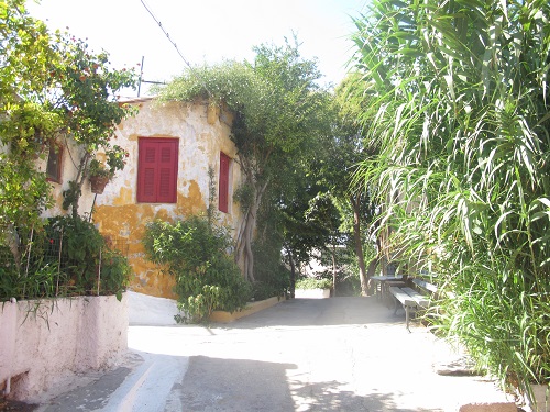 エーゲ海のアナフィ島から移り住んできた人々が最初に住んだので、アナフィオティカと呼ばれる。北東斜面の岩の上にできた住民地区なので、細い階段道は岩を削って作ったものだ。