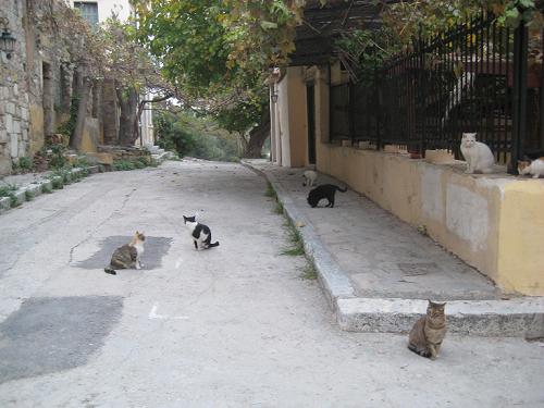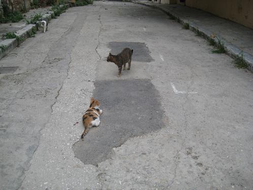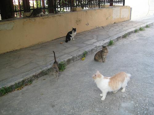 アレトゥサ通りには猫のグループが二つの分かれています。