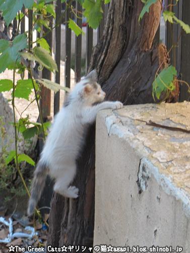 この上に行きたいけど、コンクリートをよじ登れにゃ~。