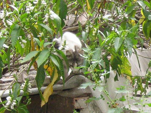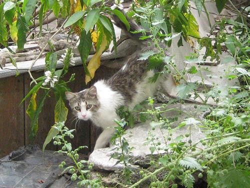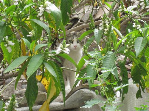 ひょっとして、この草葉の陰に顔見知りのにゃんこさんがいるかもしれない。