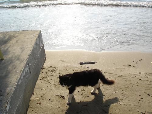 う~む、波が打ち寄せないところがいいにゃ。