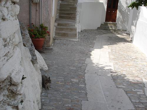 アノ・シロスの町の聖ジョージ(聖ゲオルギオス)教会近くに猫たちが、