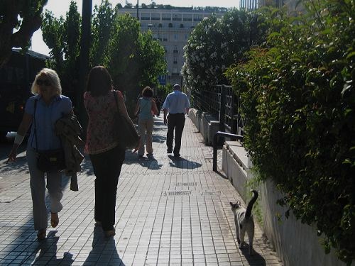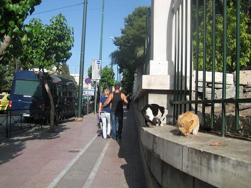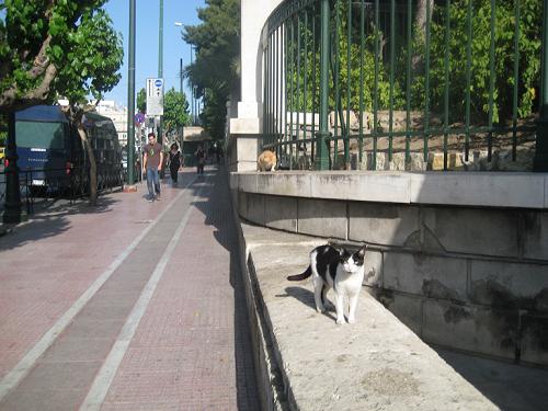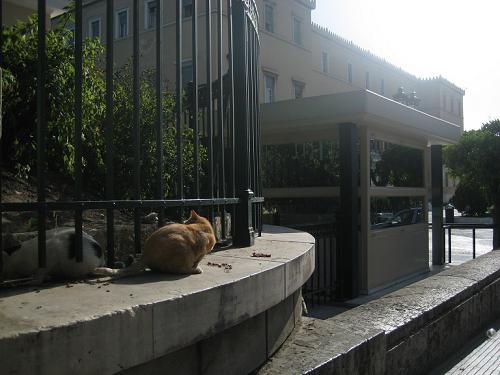 国会議事堂の北側のヴァシリス・ソフィアス通りの入口付近に猫を発見しました。