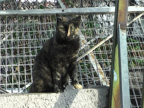 アクロポリスの東側の下の方の廃屋に住むサビ猫さんは賢女です。