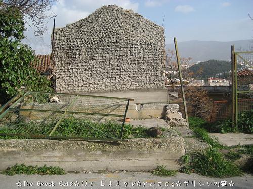 灰色の大猫君が、最近、ストラトノス通りの廃墟付近の出没します。