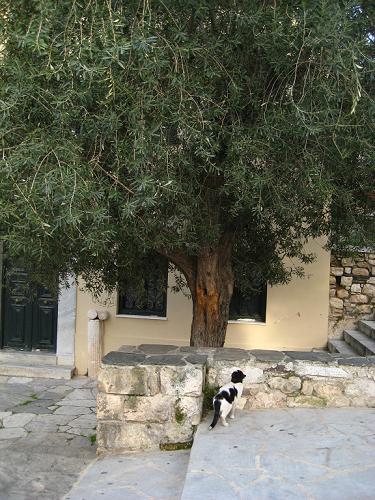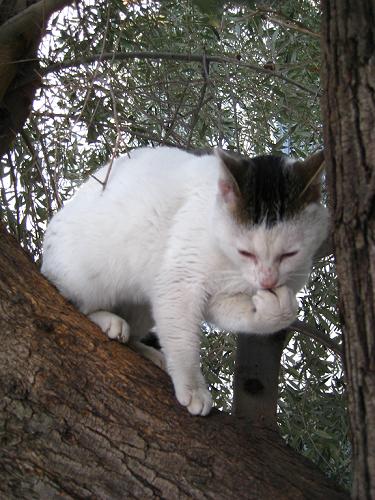 ボクはこのオリーブの木の上で猫集会に参加するの。