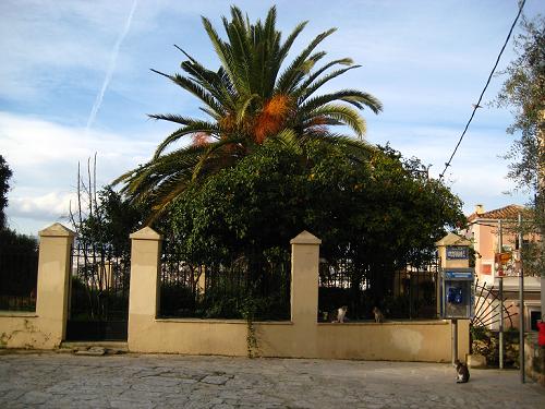 このパームツリーとオレンジ退きのあるフェンス内は二色猫ブブカの