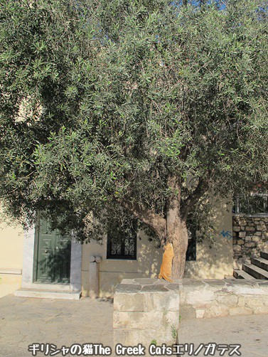 このオリーブの木はいつも猫の誰かが独占してるんだよ。