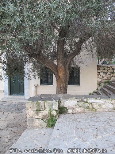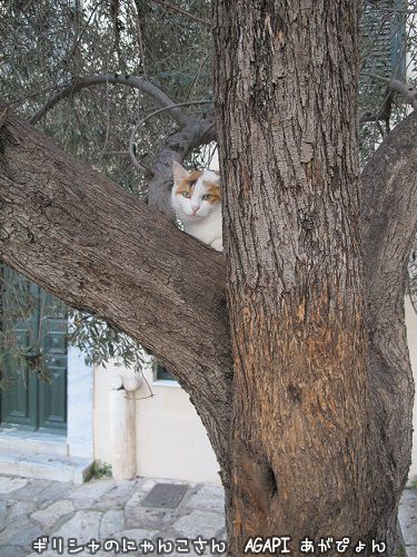 オリーブの木さらに上には黒白仮面猫のクラランがおるんですわ。