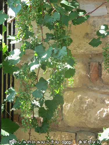 この小さな庭には夏の終わりと秋には葡萄がたわわになる。