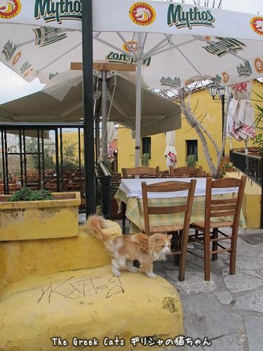 この店の(故?)飼猫ミツォスの指定席から客引きをします。