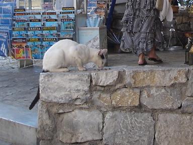 す。テスピドス通りは階段通りで、車が入れないので、そういう猫