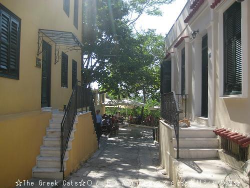 冬は閉まっているので、アレトゥサス通りで猫給食を食べます。