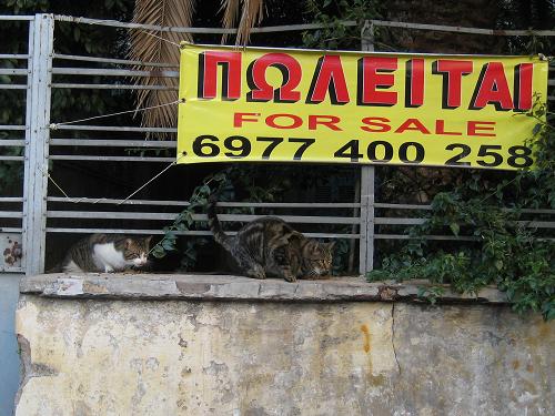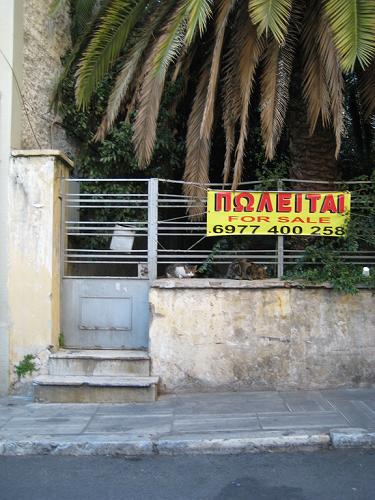 ギリシャ語でポリテ(売ります)と書かれた古い屋敷に