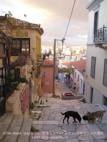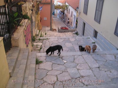 ぼくは残り物のカリカリを食べにパノス通りを下りていくと、