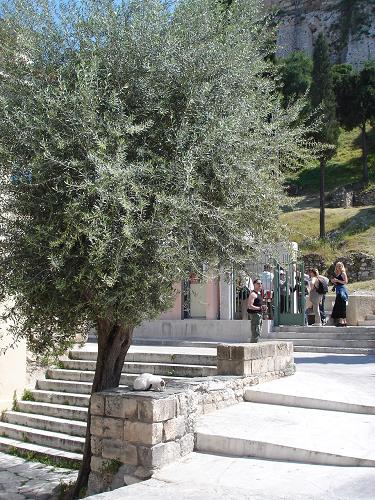 そこにはこのようにオリーブの木があって、その木陰に猫がいました。