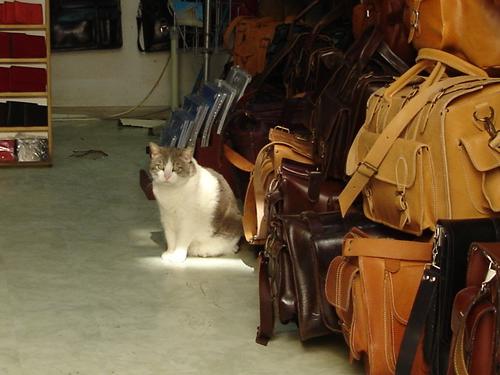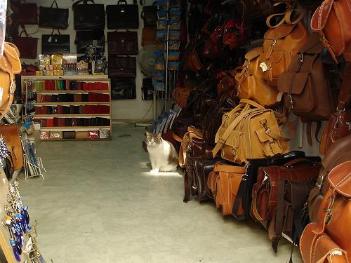 いらっしゃいませ。ハンドメイドの革製品のお店です。