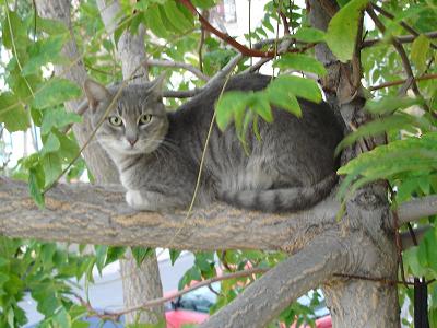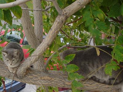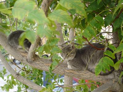 そのムスメの父親と思われる猫と一緒に木に登っています。