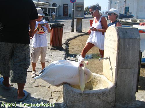 ほら、あそこの水飲み場で観光客たちに囲まれてよ。