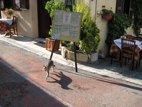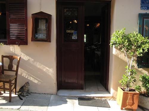 猫たちはこの二つの店の周りにいます。タベルナのほうにお客様がくると