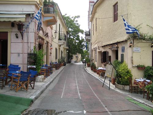 これがプラカのリシウ通りです。南側に喫茶店メリナで、北側にタベルナ・ゾルバがあります。