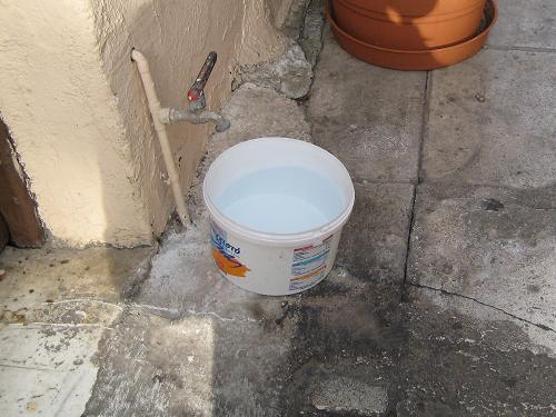 北側にタベルナ・ゾルバと喫茶店メリナの倉庫があります。その間付近に水道がついています。
