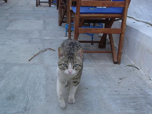 猫のアレクサンドロスは、タベルナ・ゾルバ、喫茶店メリナ、タベルナ・プサラを移動して