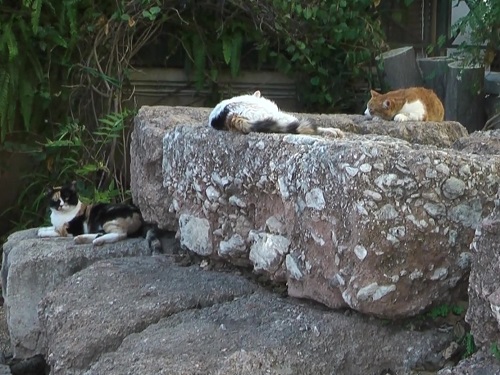 リシクラテス記念碑のある広場は猫さんたちのたまり場になっています。