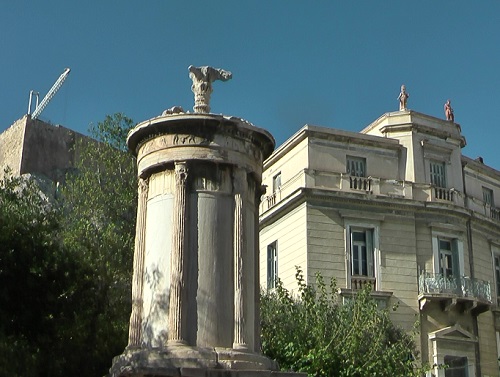 リシクラテスの記念碑の広場には仲良し三匹の猫さんが一緒にいます。