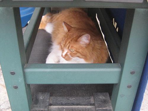 あのたぬきもこの家の残飯を狙う強敵のヒトリにゃんだわ。