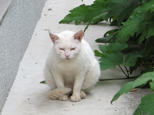 左猫は真っ白ですぐ気持ちを行動に移します。