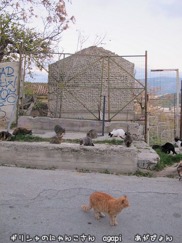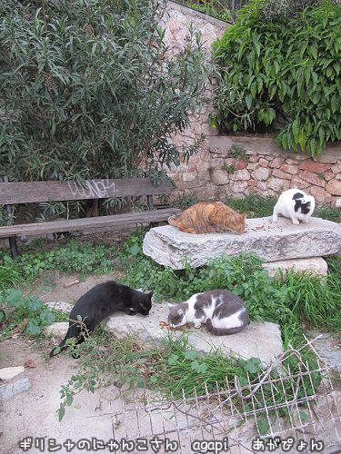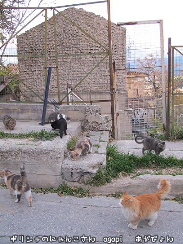 アクロポリス北城壁下の猫たちは仲良く生活しているのだが、