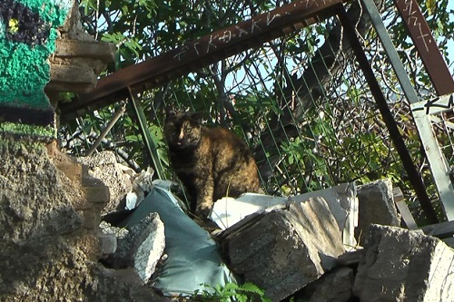 ここはアクロポリスの北東です。道草してるさび猫さんに会いました。
