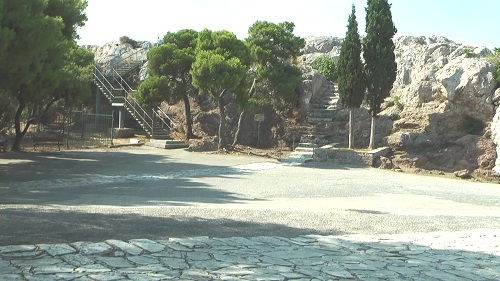 クレプシドラス通りの南の突き当りはアクロポリスの北斜面で、