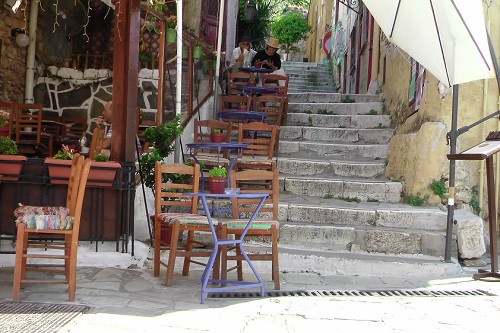 ネットで、ギリシャのアテネ市プラカ地区のレストランや喫茶店を