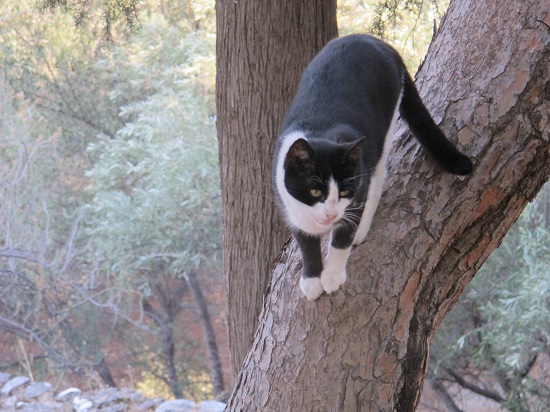 この猫君はポッキー。塀の上でゴハンをくれる人が来るのを待つ。
