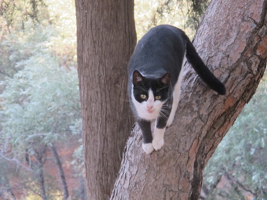 この猫君はポッキー。塀の上でゴハンをくれる人が来るのを待つ。
