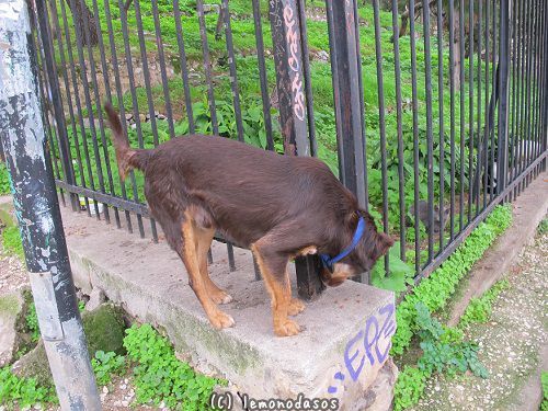 フェンスの外のじっと少年ワンコを見つめているのは猫少年のルドヴィコスだ。