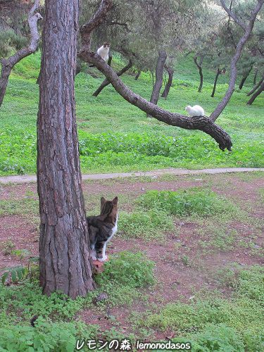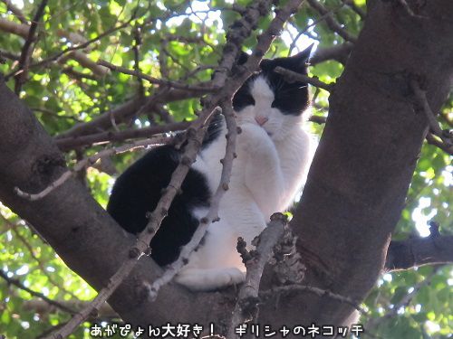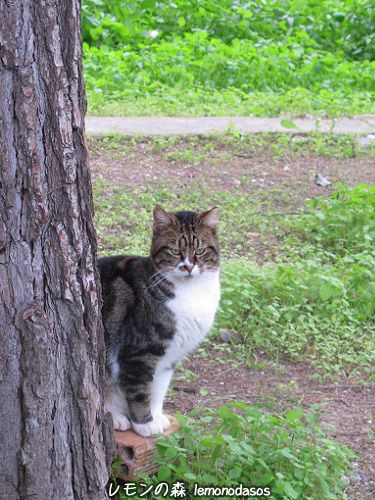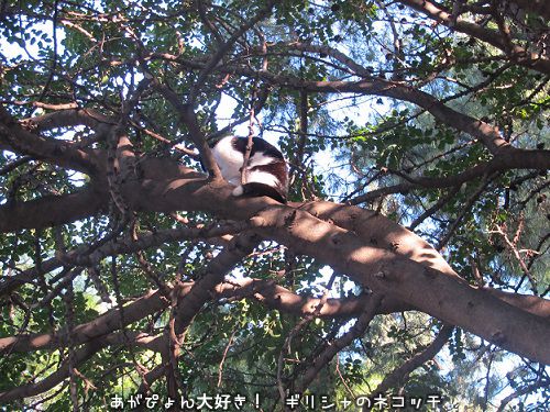 食べたから今度は木登して、木の上から他の猫たちの集合を見学しようかな?