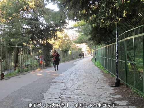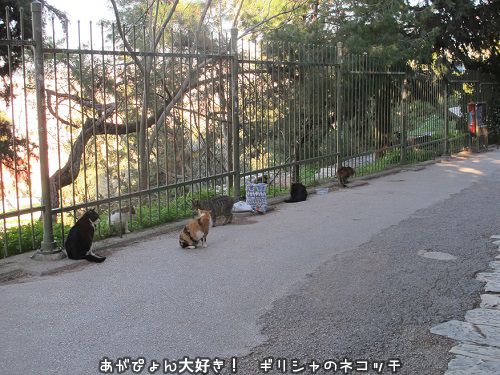 アクロポリス北斜面の猫給食B地点に猫たちが三三五五と集まって来た。