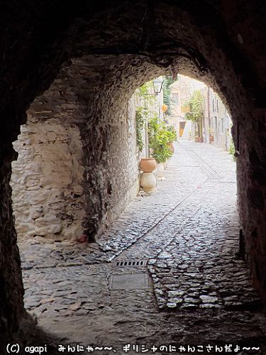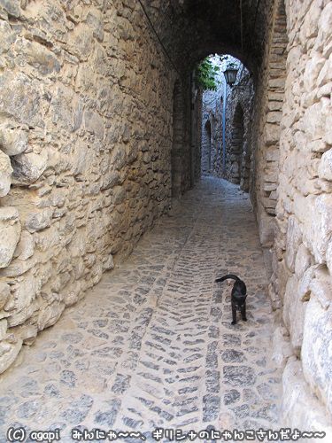 石畳の道で黒猫さんとすれ違った。どこかで集会があるらしい。