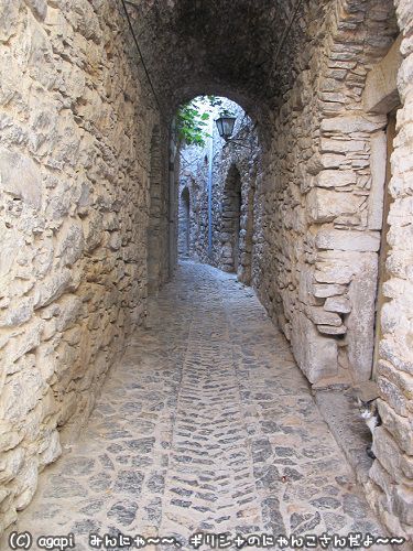 ヒオス島のメスタというのは要塞化された町である。迷路のように張り巡らされた道を歩くのが面白い。どうしてこのような町ができたかというと異民族や海賊からの侵入から防御するために作られている。隣家の壁がつながっている。この町に入るには数か所の入り口しかない。