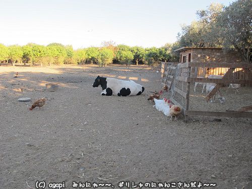 奥に行くと搾乳用の牛と、卵用の鶏、ヤギさんが仲良くしていた。