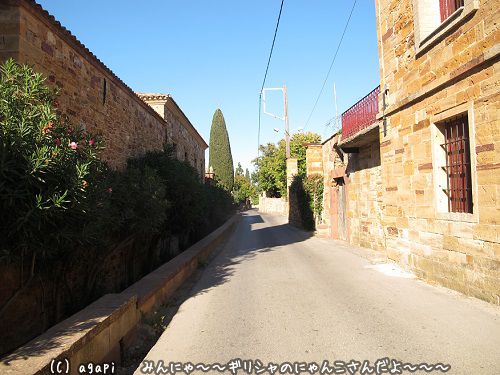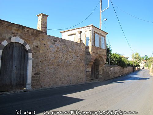 外の出る道路沿いに厚い石壁のかかった中世の邸宅が並んでいた。