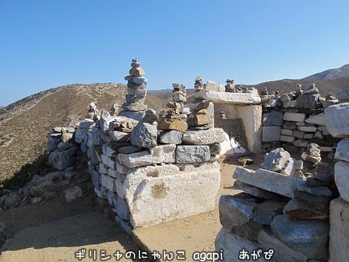 来た観光客たちはみんな小石を積み上げていくみたいにゃ。